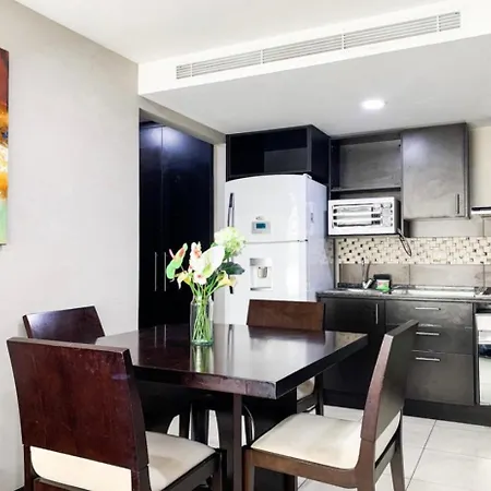 Departamentos De Lujo En Puerto Santa Ana, Guayaquil Ecuadorアパ-トメント内の台所で,お好みの食事を快適に調理できます. アパ-トから徒歩で5分くらいほどのTroncal 1 "Barrio Centenario N-Sバス停があります.